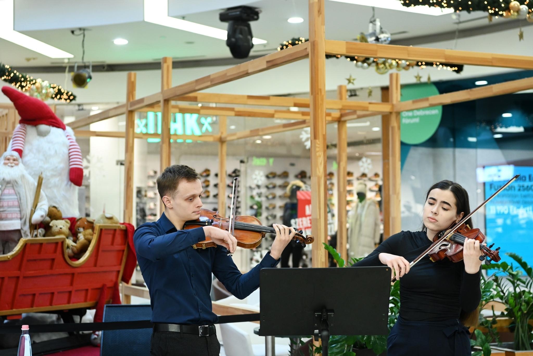 Négy héten át zenélnek a Debreceni Egyetem Zeneművészeti Karának hallgatói a Csapó utcai bevásárlóközpontban. A ZK csaknem száz oktatója és hallgatója lép fel a FÓRUM Debrecen színpadán, mintegy húsz klasszikus zenei koncerttel varázsolják el a vásárlókat és osztják meg velük a karácsony meghitt hangulatát.