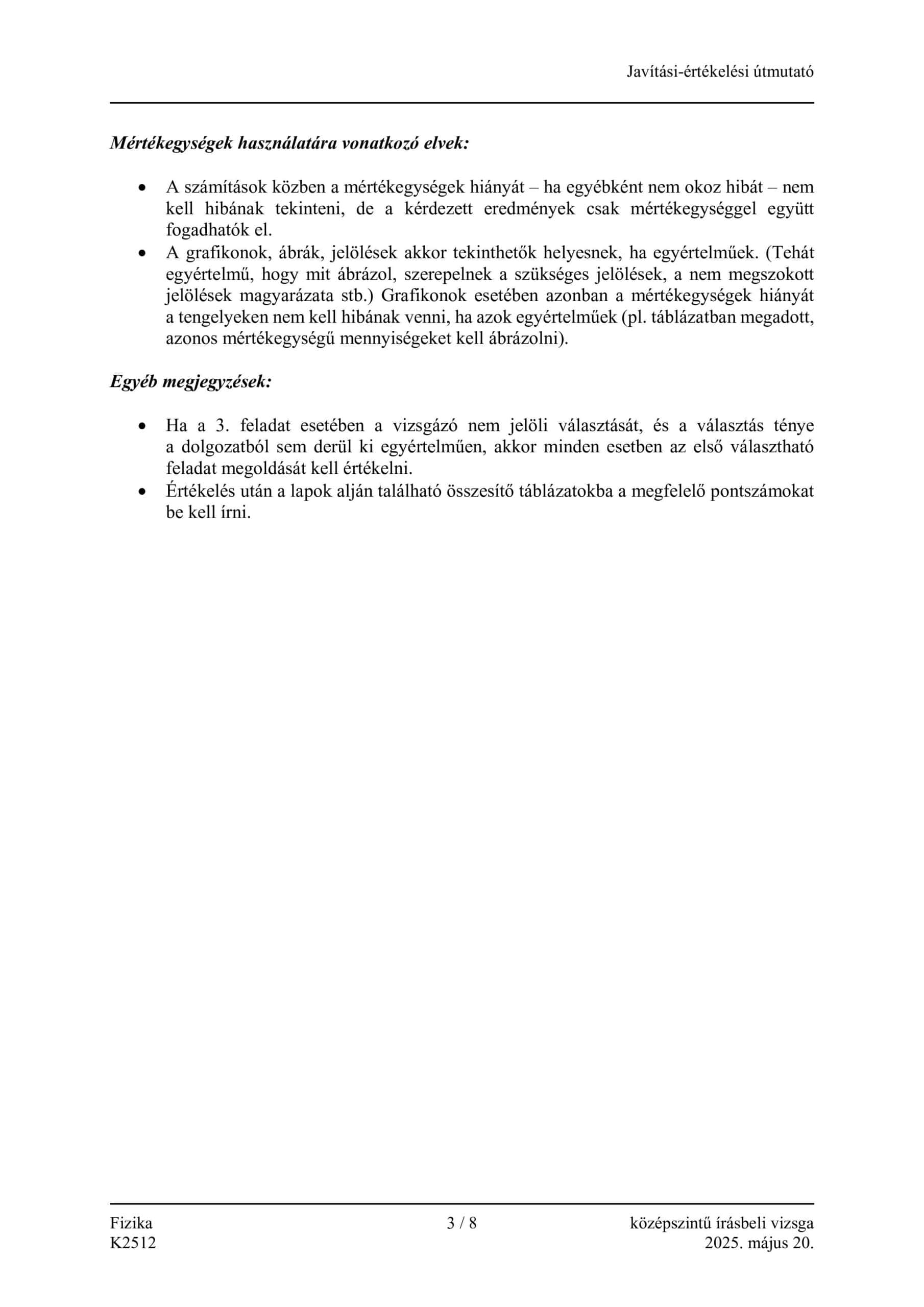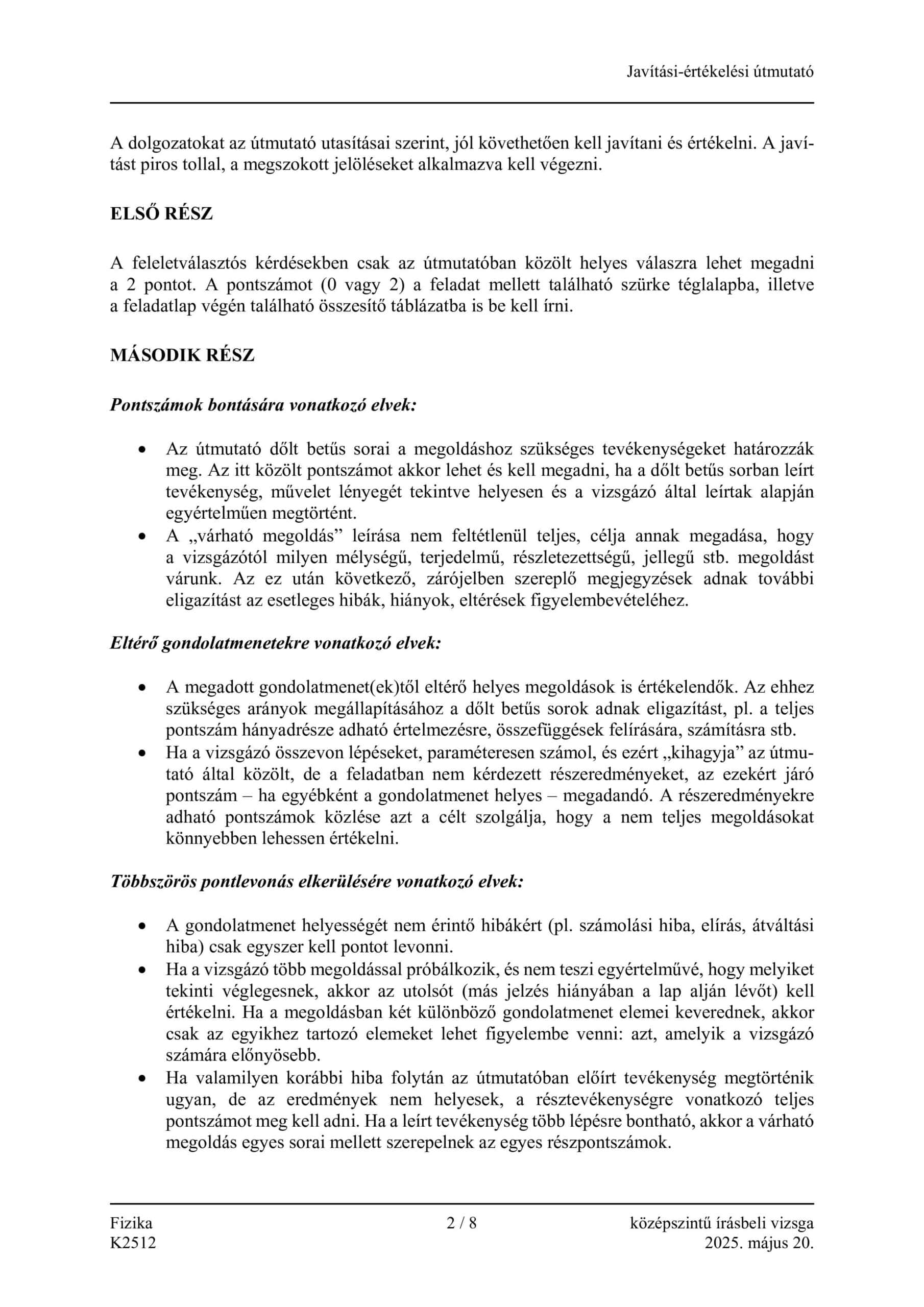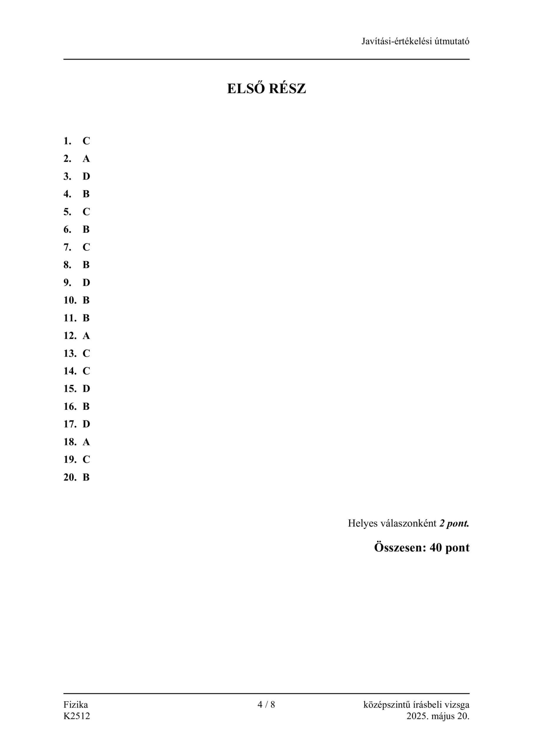 Az idei középszintű fizikaérettségi írásbeli feladatsorának megoldókulcsa: