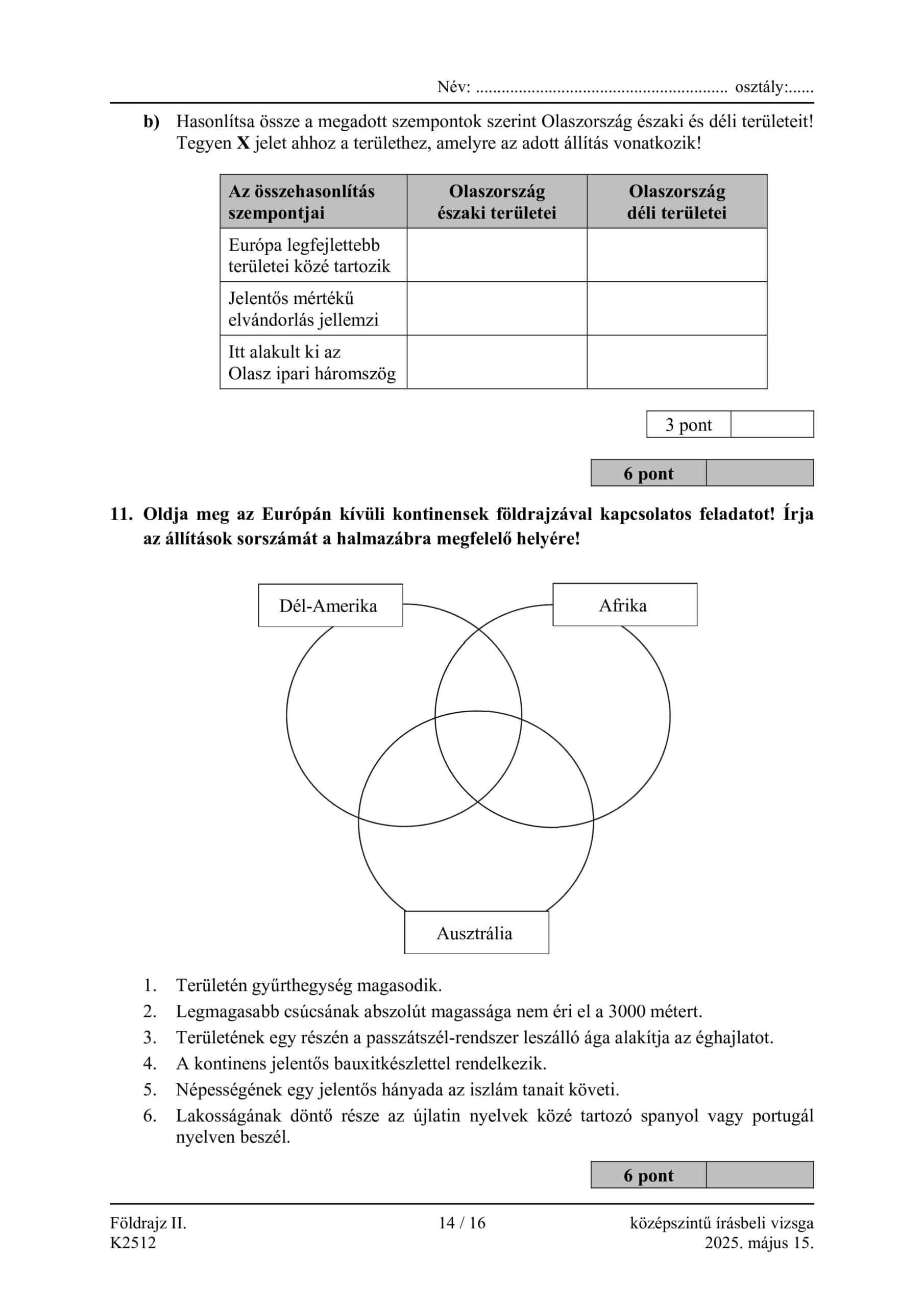 Megjelent a 2025-ös földrajzérettségi feladatsora és a hivatalos megoldókulcs!