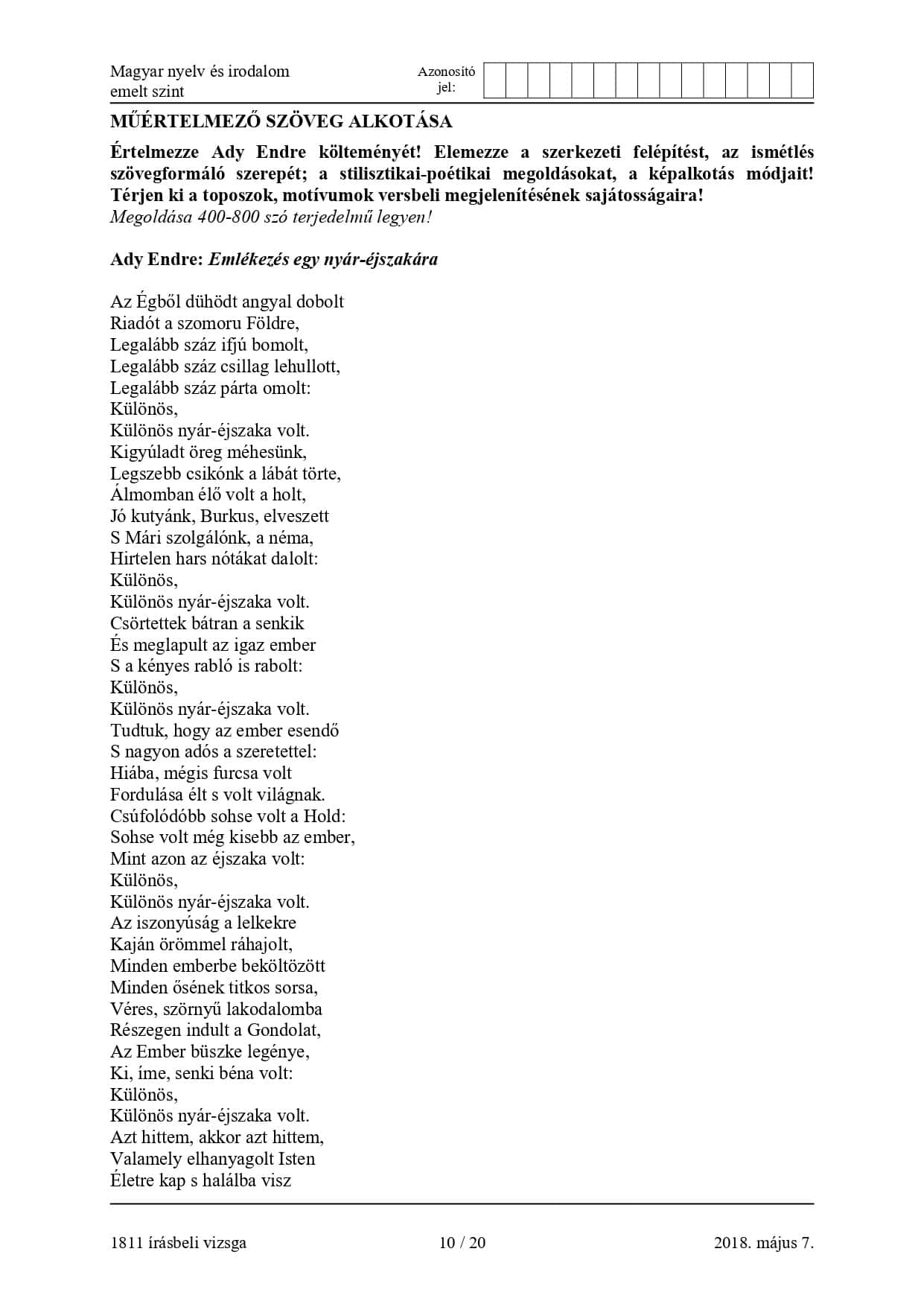 Kíváncsi vagy, hogy állsz az érettségire való felkészülésben? Most kiderül, hogy elég-e a tudásod a vizsga teljesítéséhez! Ezúttal a 2018-as tavaszi emelt szintű magyar érettségi írásbeli feladatsorát hoztuk el neked.