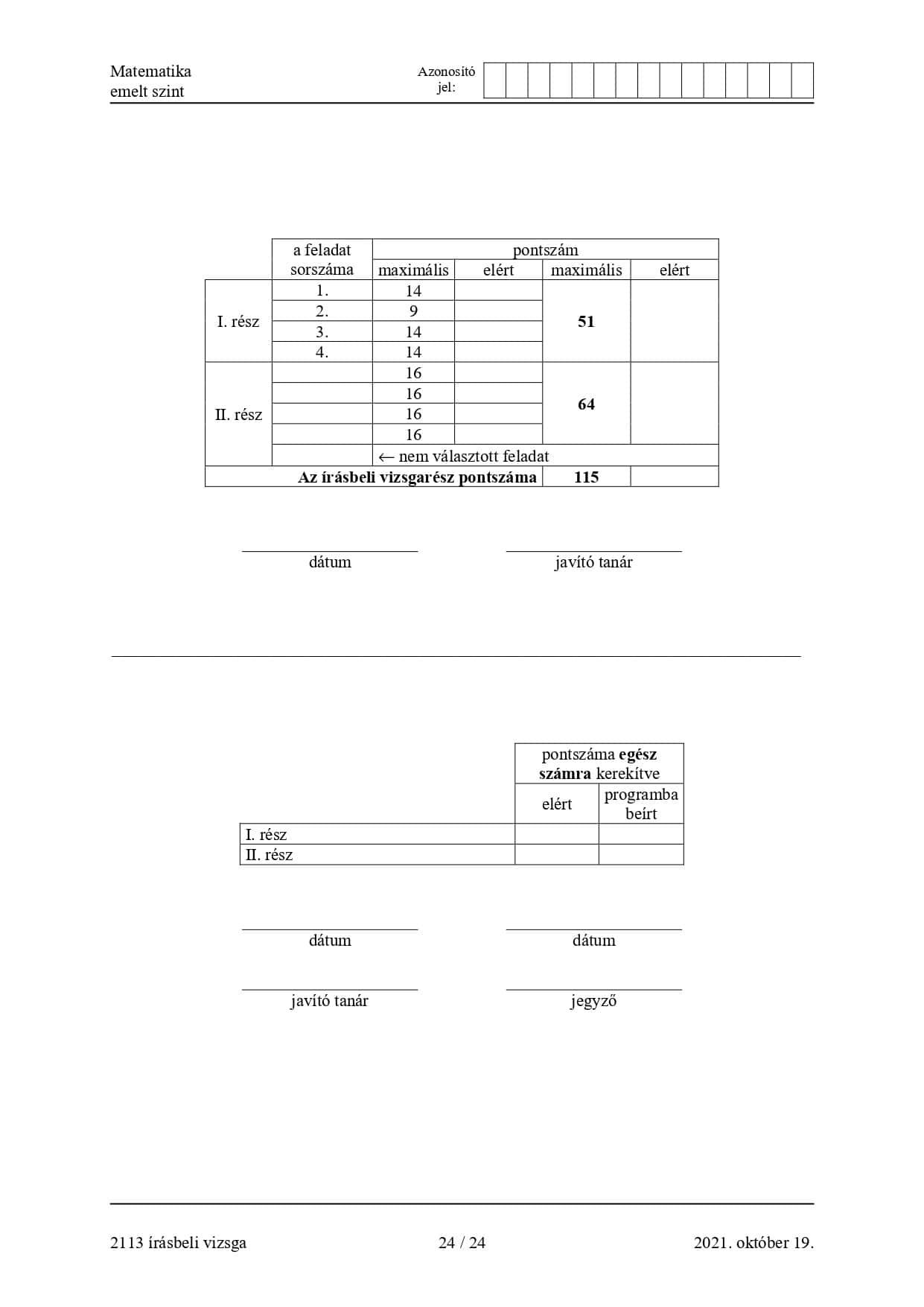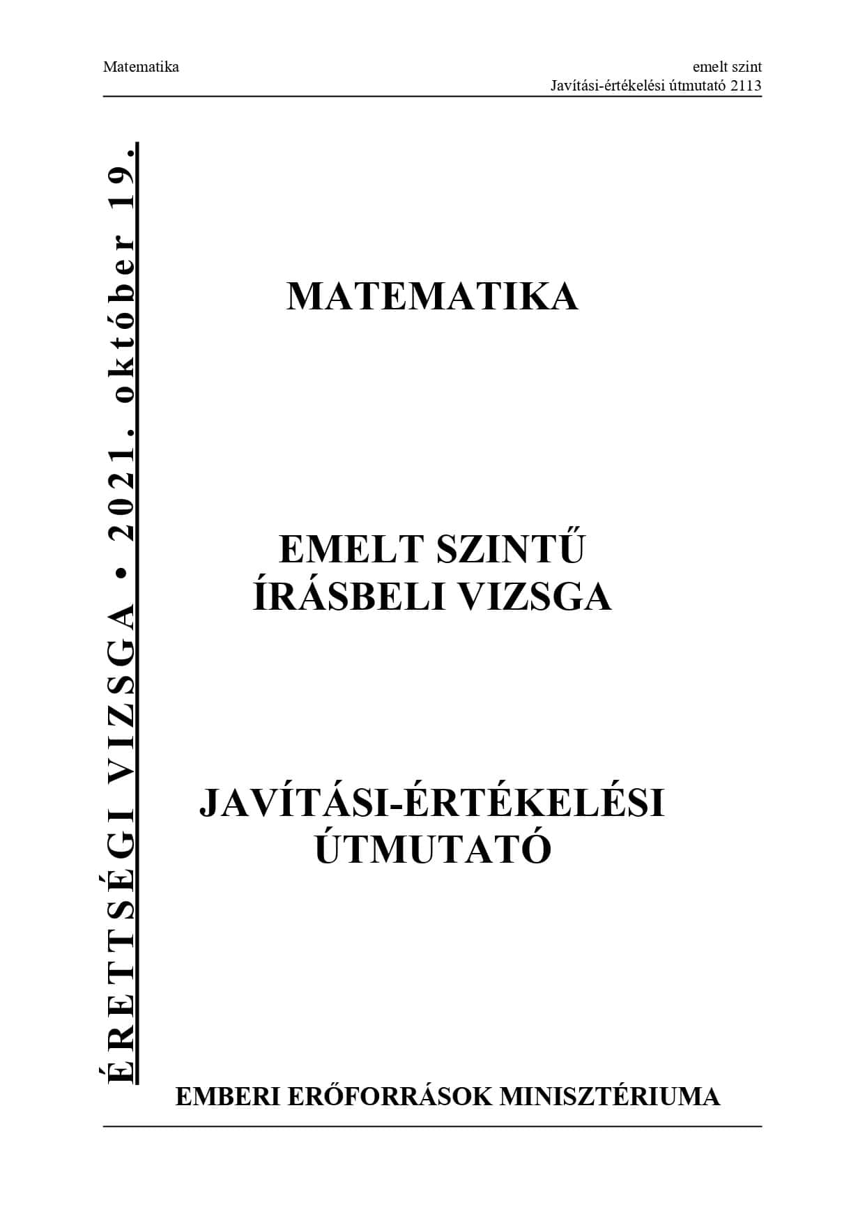 2021-es őszi emelt matematika érettségi írásbelijének megoldásai: