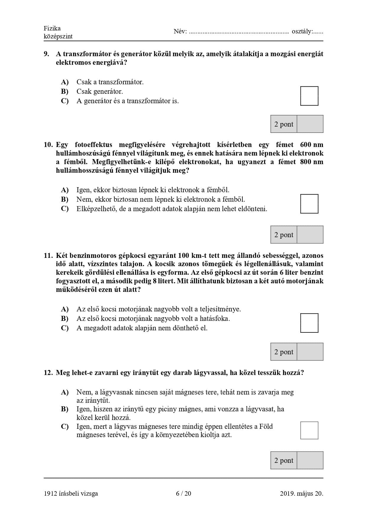 Mennyire sikerült volna a 2019-es fizika érettségi? | Oldal 2 a 6-ből | Diplomátszerzek