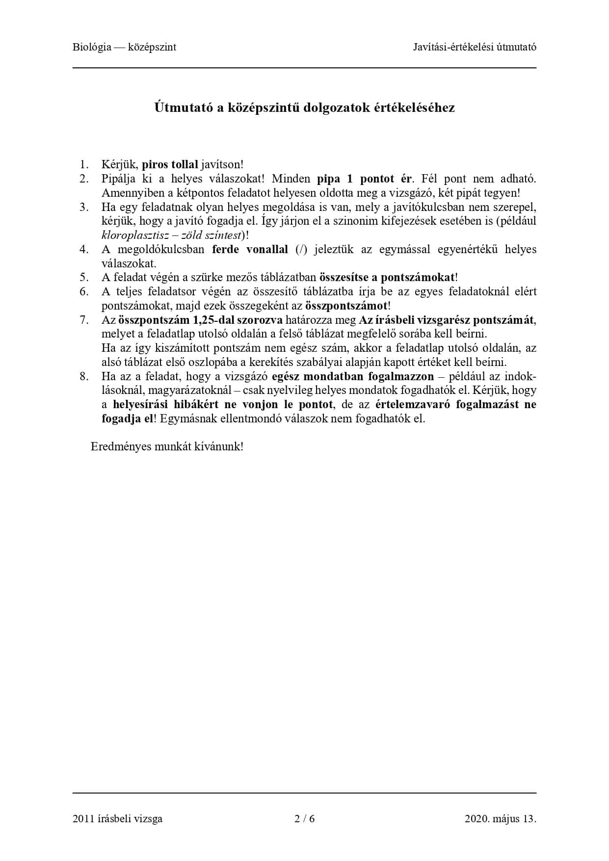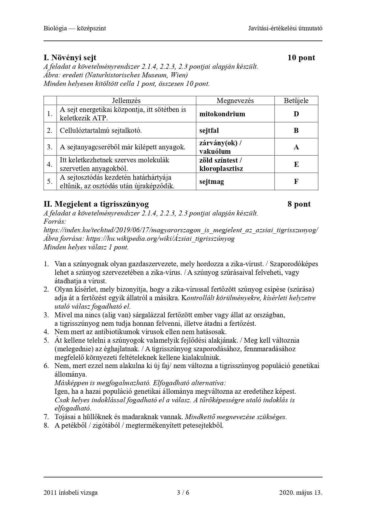 2020-as tavaszi középszintű biosz érettségi írásbelijének megoldásai: