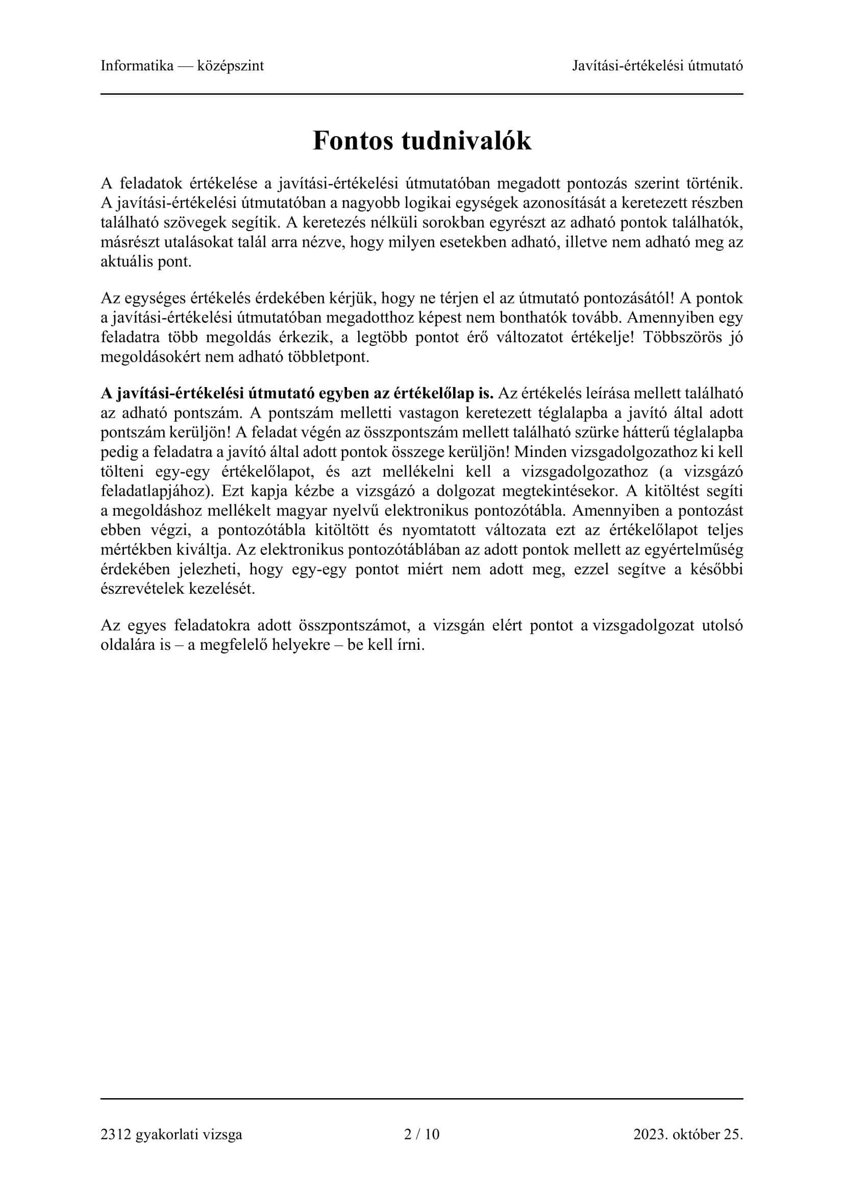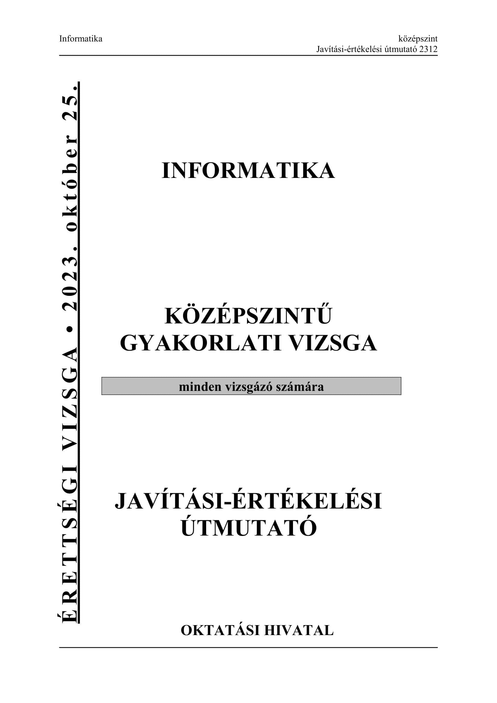 Az utolsó középszintű informatika írásbeli érettségijének megoldásai: