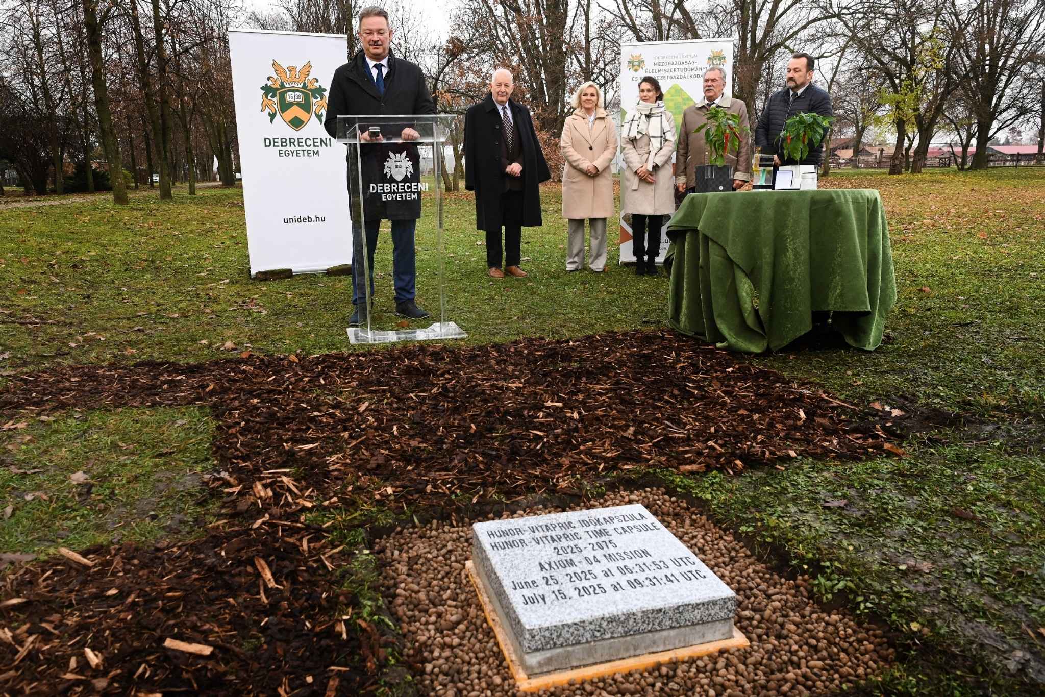 Az első magyar űrnövény-kísérletnek, a Vitapric programnak állítanak emléket azok az időkapszulák, amelyeket a IV. Növénynemesítési Emléknap és Konferencia keretében helyeztek el kedden a Debreceni Egyetem Böszörményi úti campusán. A Nemzetközi Űrállomáson (ISS) az Axiom-4 küldetés keretében Kapu Tibor második magyar űrhajós által végzett tudományos vizsgálatok elemei, egyebek mellett magvak, dokumentumok és speciális eszközök kerültek a tárolókba. A kapszulák elhelyezésénél ott volt az első magyar űrhajós, Farkas Bertalan is.