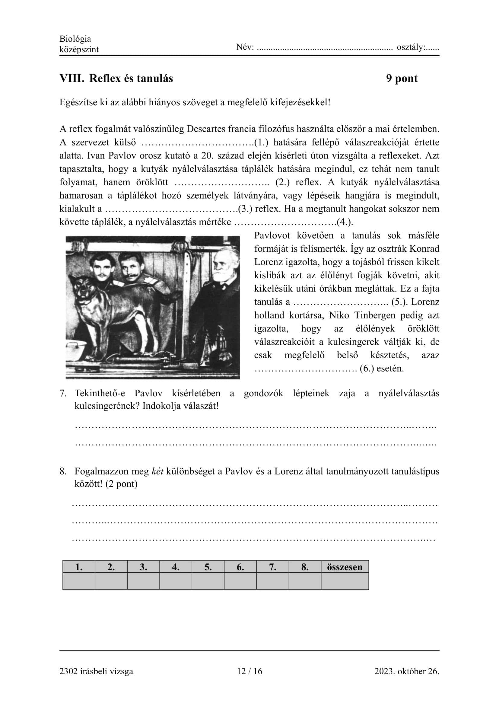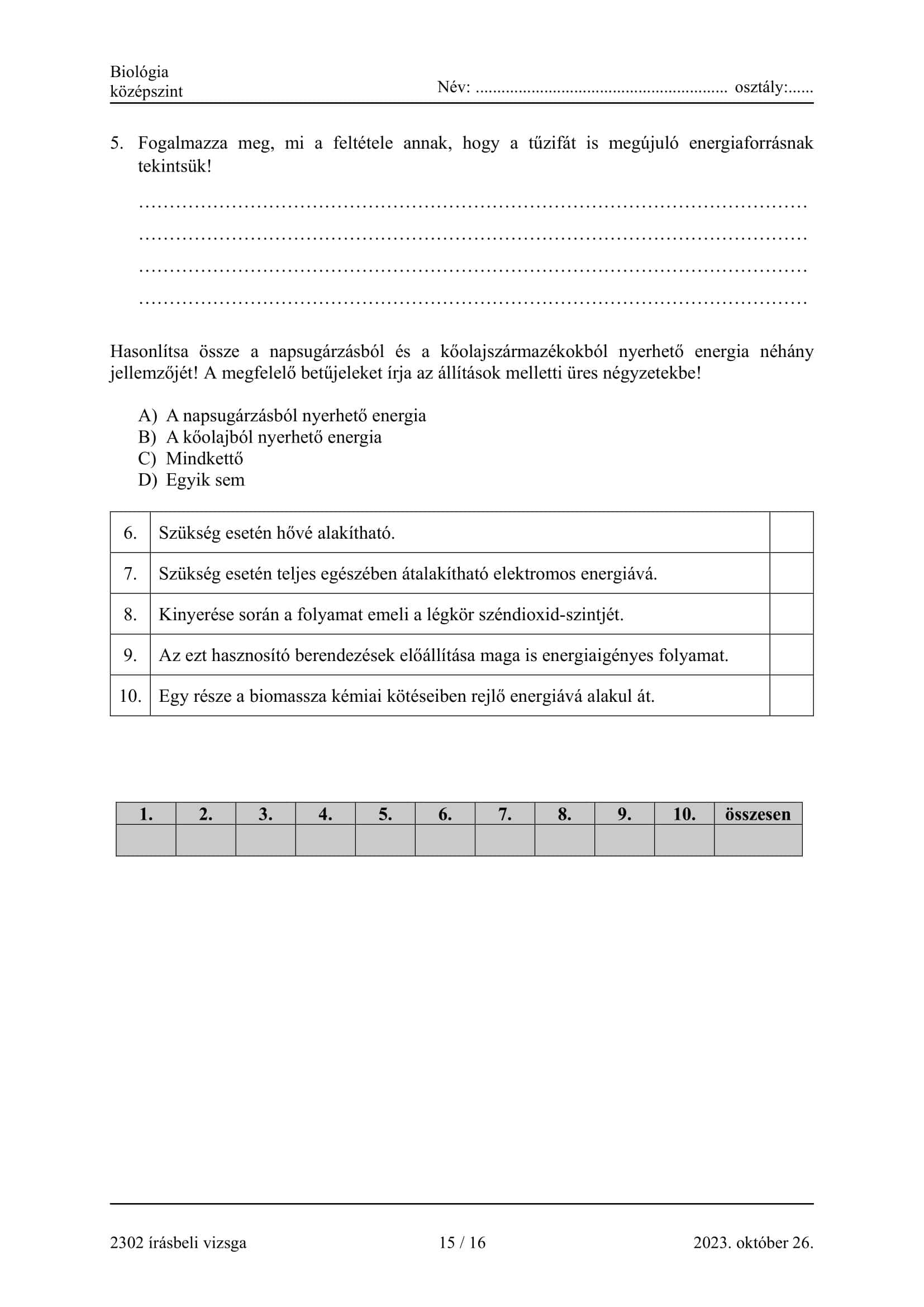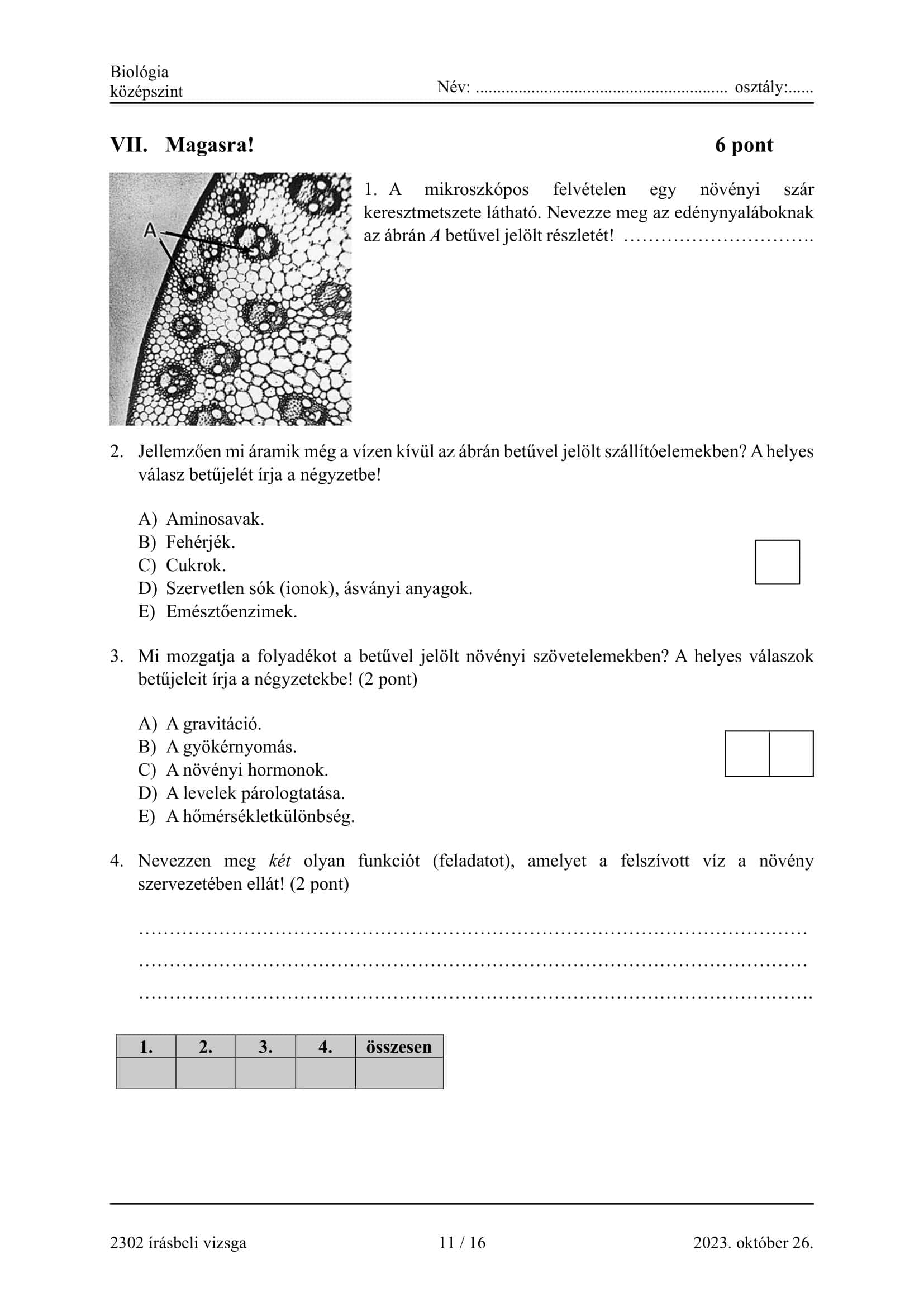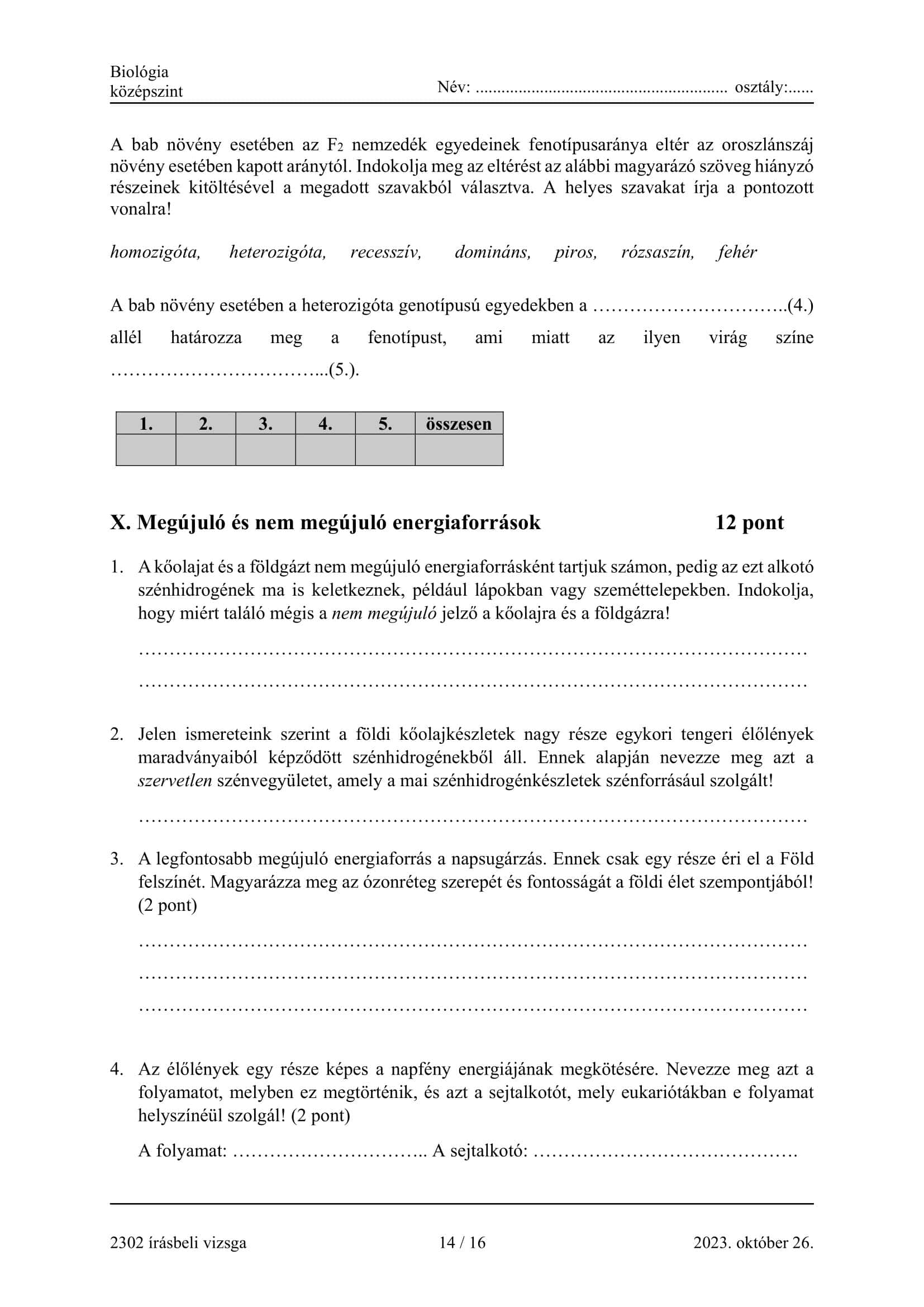 Az új Nemzeti alaptanterv szerinti adatokat közöljük, mivel többet nem lehet már majd a régebbi szerint vizsgát tenni biológiából.