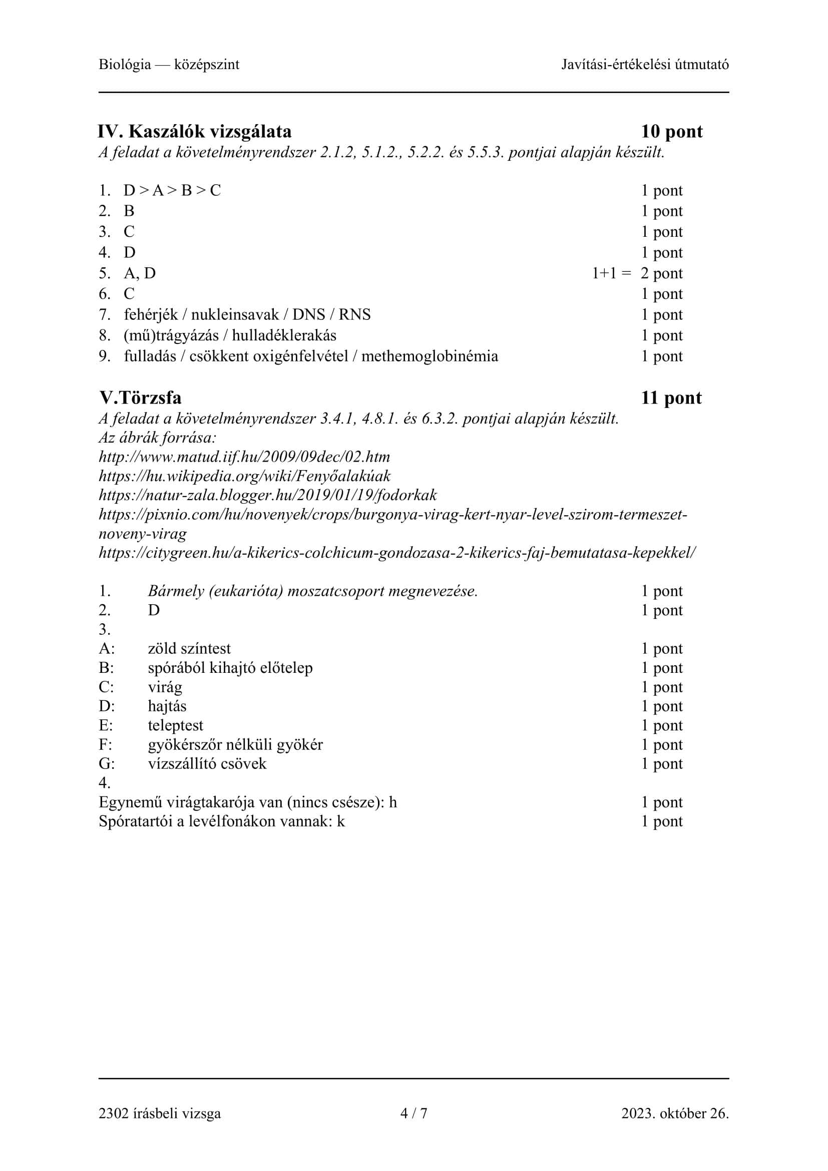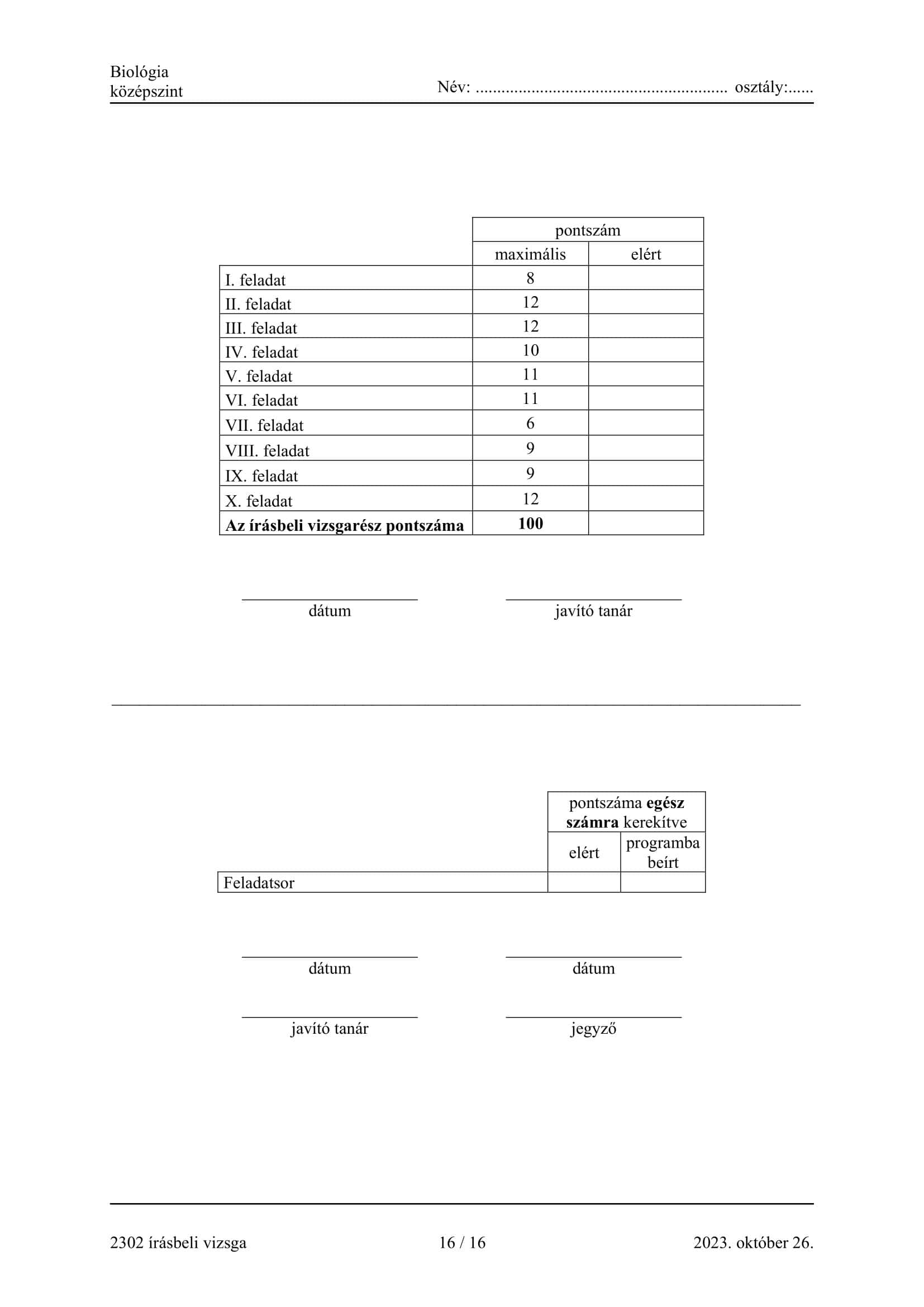 Az új Nemzeti alaptanterv szerinti adatokat közöljük, mivel többet nem lehet már majd a régebbi szerint vizsgát tenni biológiából.