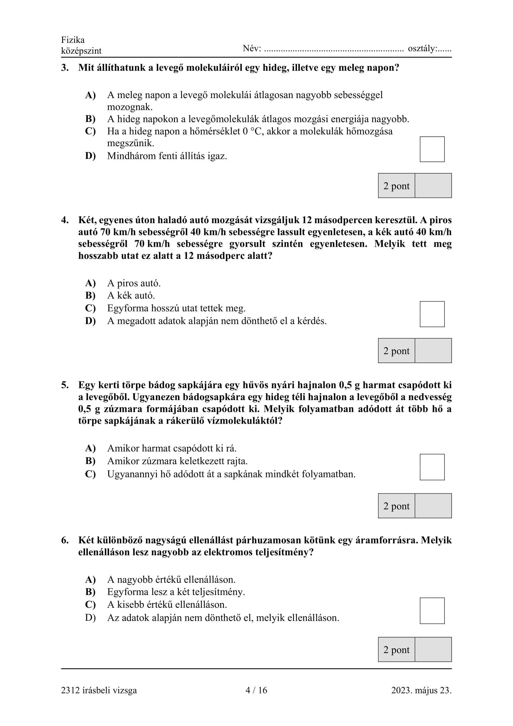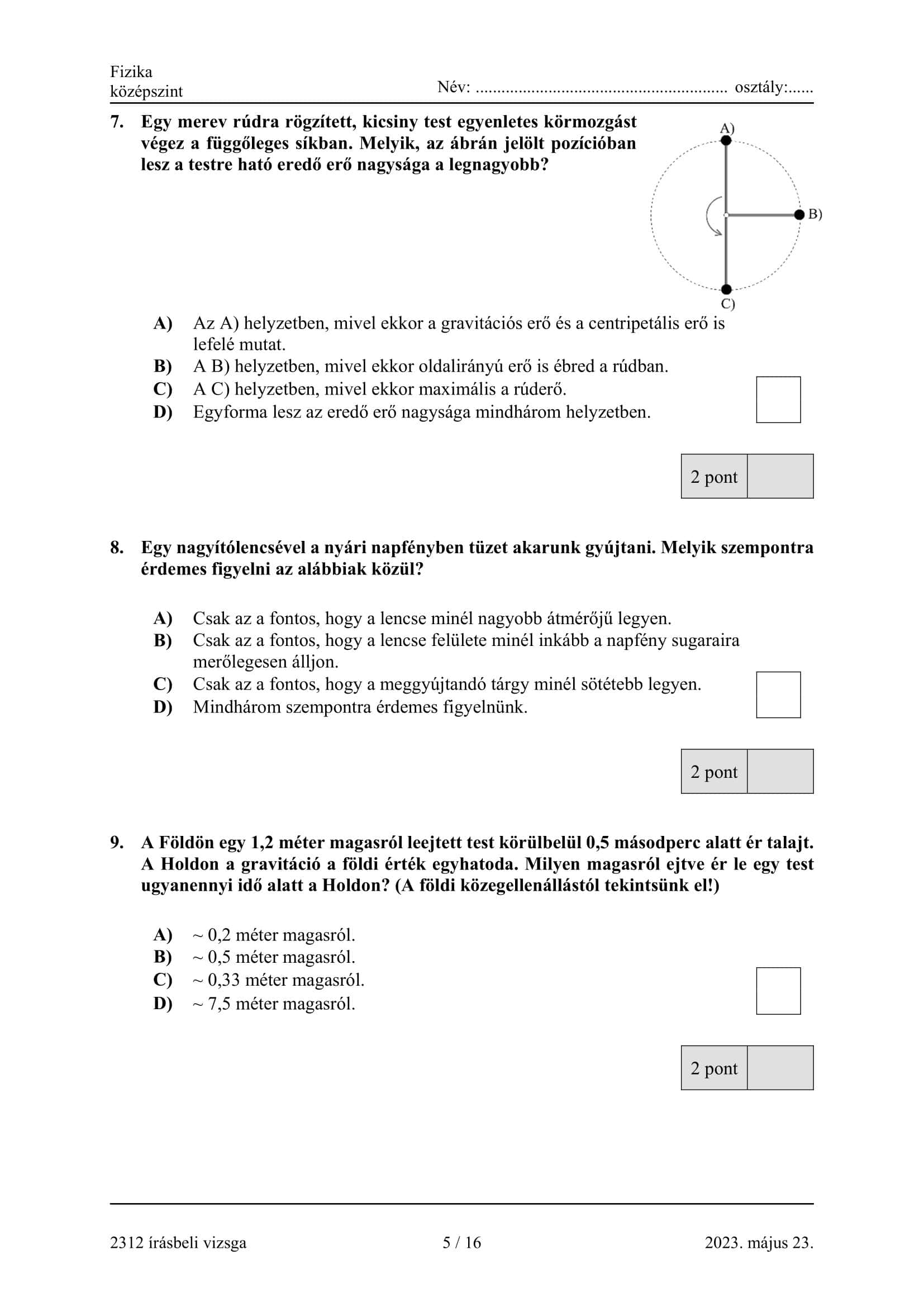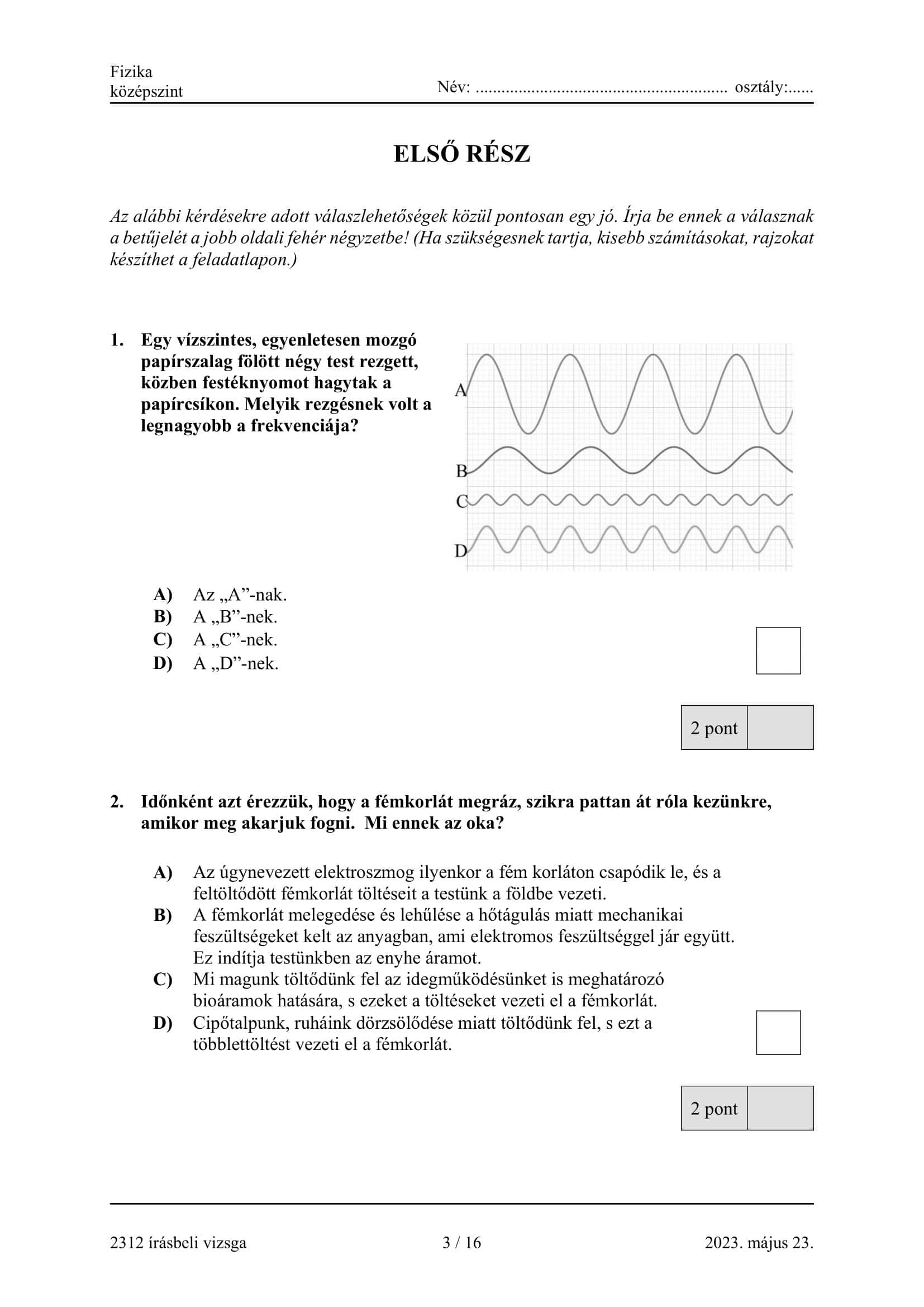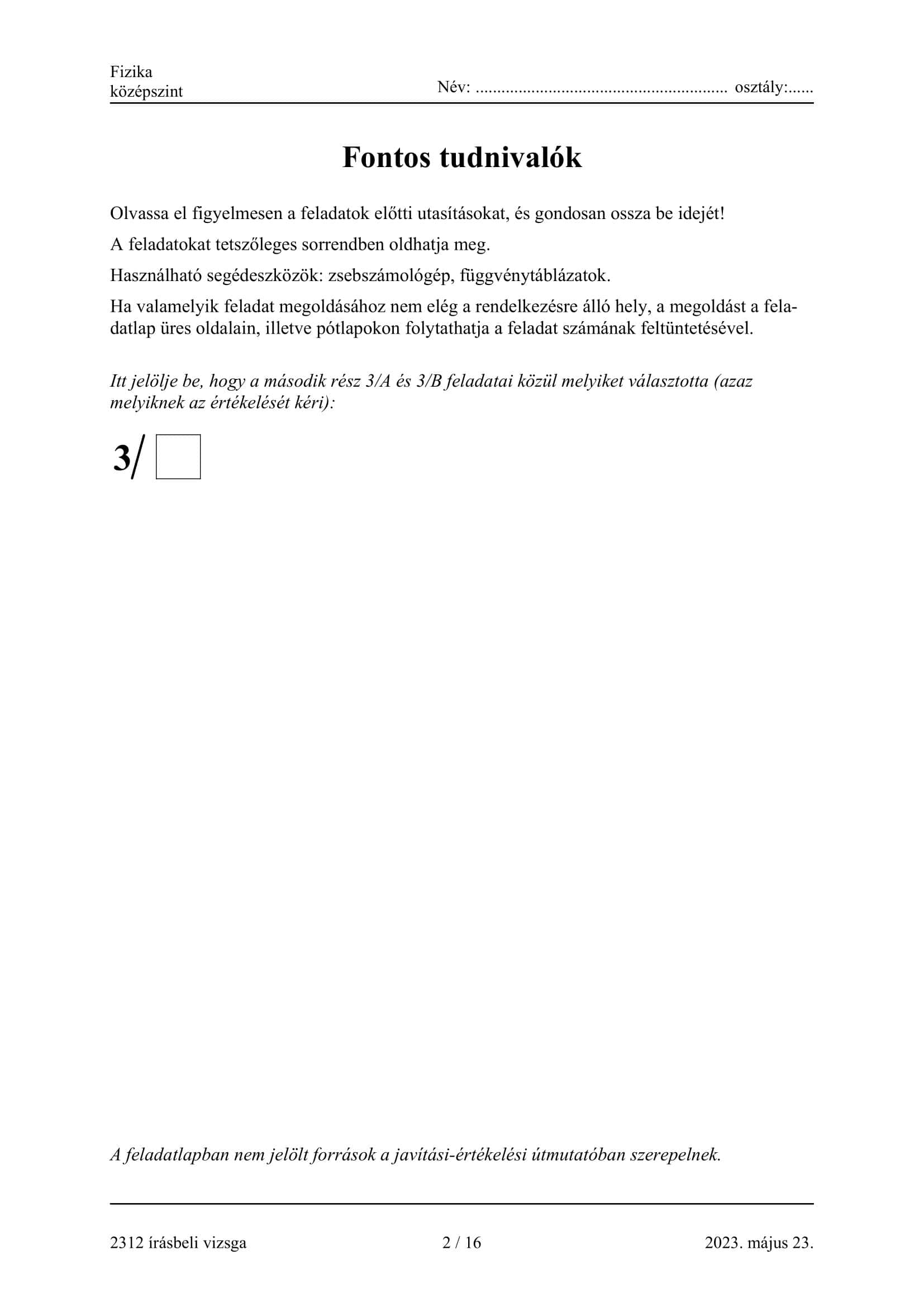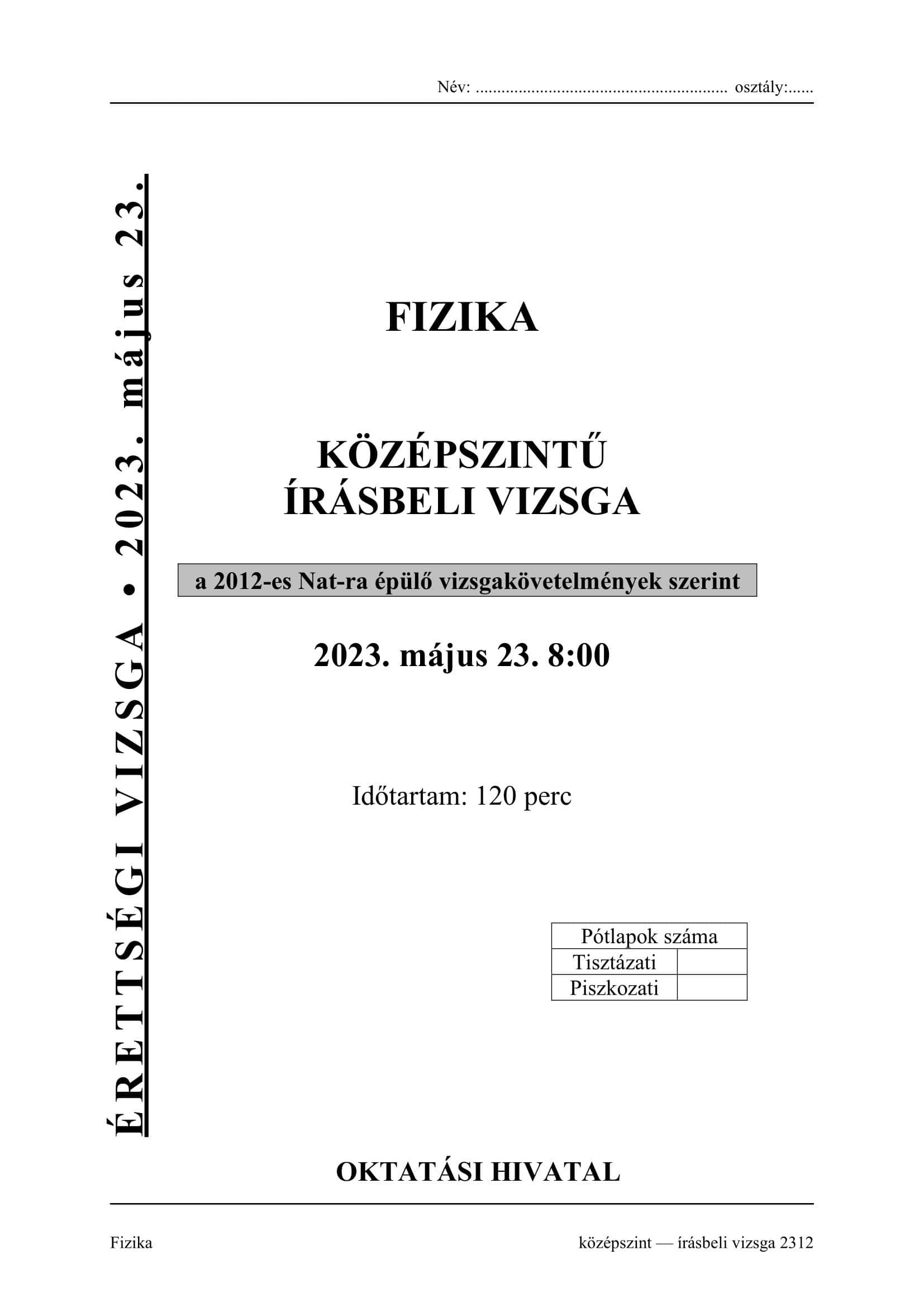 Az idei középszintű fizika érettségi írásbeli feladatsora: