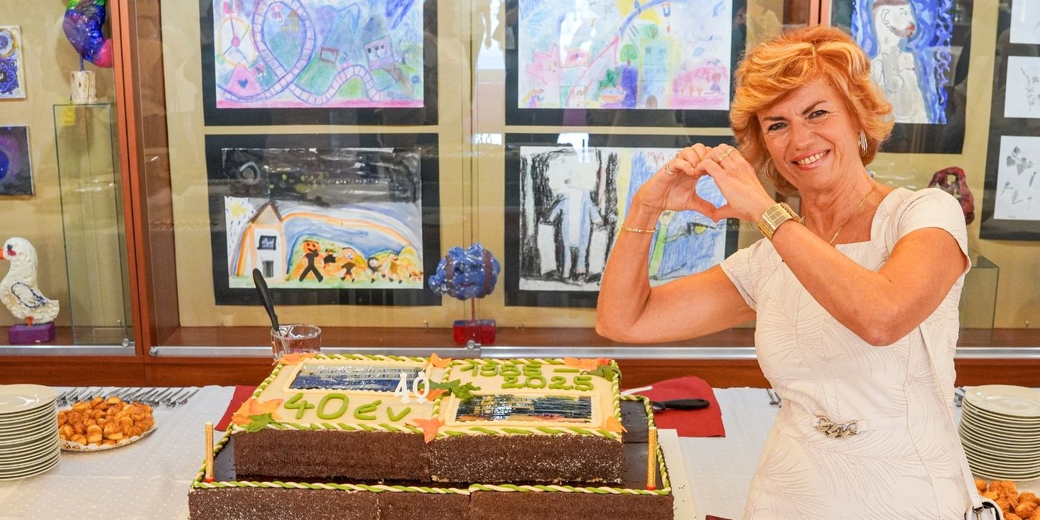 A kiemelt képen Horváthné Hidegh Anikó látható a 40. jubileumi tanévnyitón. Forrás: Százhalombattai Arany János Általános Iskola és Gimnázium.