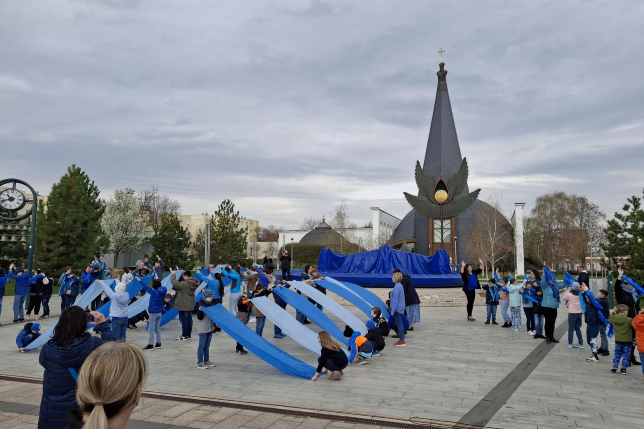 Autizmus világnapi műsor a város Fő terén (Forrás: Százhalombattai Arany János Általános Iskola és Gimnázium)