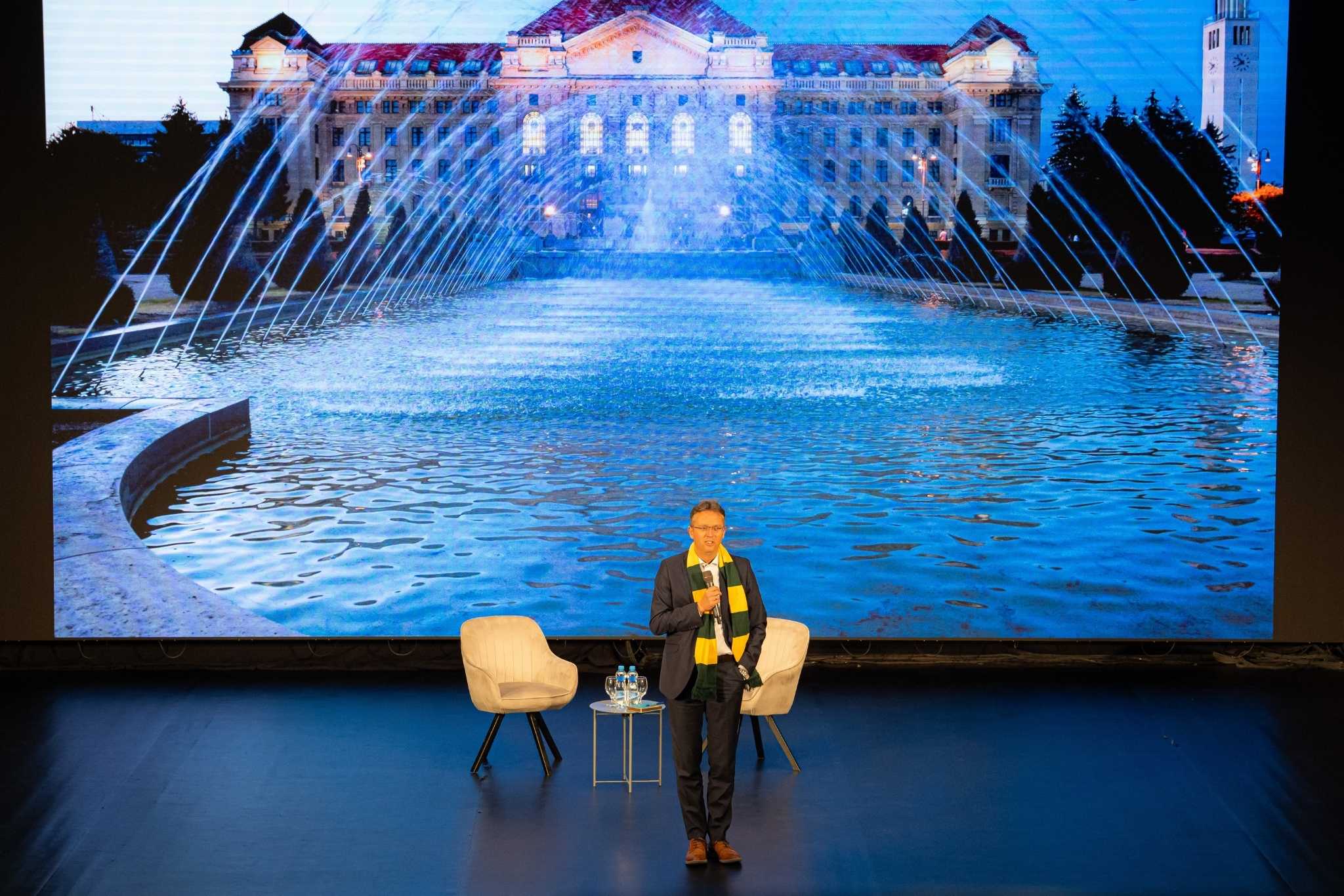 „Az ország azon egyetemén vagytok, ahol mindaz a lehetőség, ami akár itt az oDEon Színházban, akár a változatos sportinfrastruktúrában, de minden egyéb másban is elérhető, az egy igazi campus-hangulatot teremt, kiegészítve a Campus Fesztivállal. A Debreceni Egyetem modellje ihlette azt az egész felsőoktatási rendszert, amiben most működünk és a számok azt mutatják, hogy eredményesen működünk” – kezdte hallgatói fórumát a kulturális és innovációs miniszter.