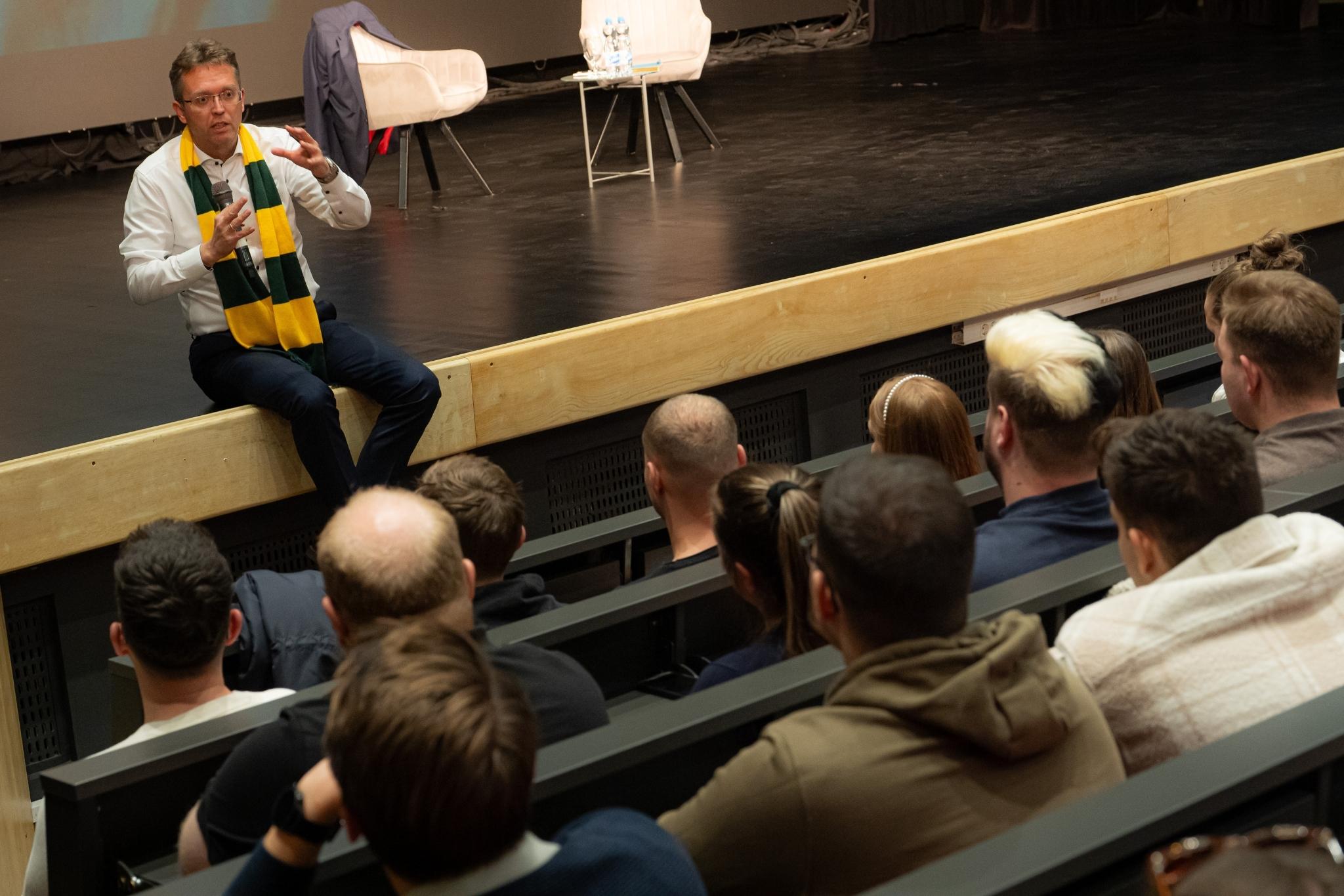 Tanulmányi és szociális ösztöndíjak, kollégiumi férőhelyek és díjak, mobilitási lehetőségek, sportfejlesztések, valamint biztonság és mentális egészség témakörében is kérdezték a Debreceni Egyetem hallgatói Hankó Balázs kulturális és innovációs minisztert a Böszörményi úti campus színháztermében. A csütörtöki hallgatói fórum a Kérdezd a minisztert!-roadshow debreceni állomása volt.