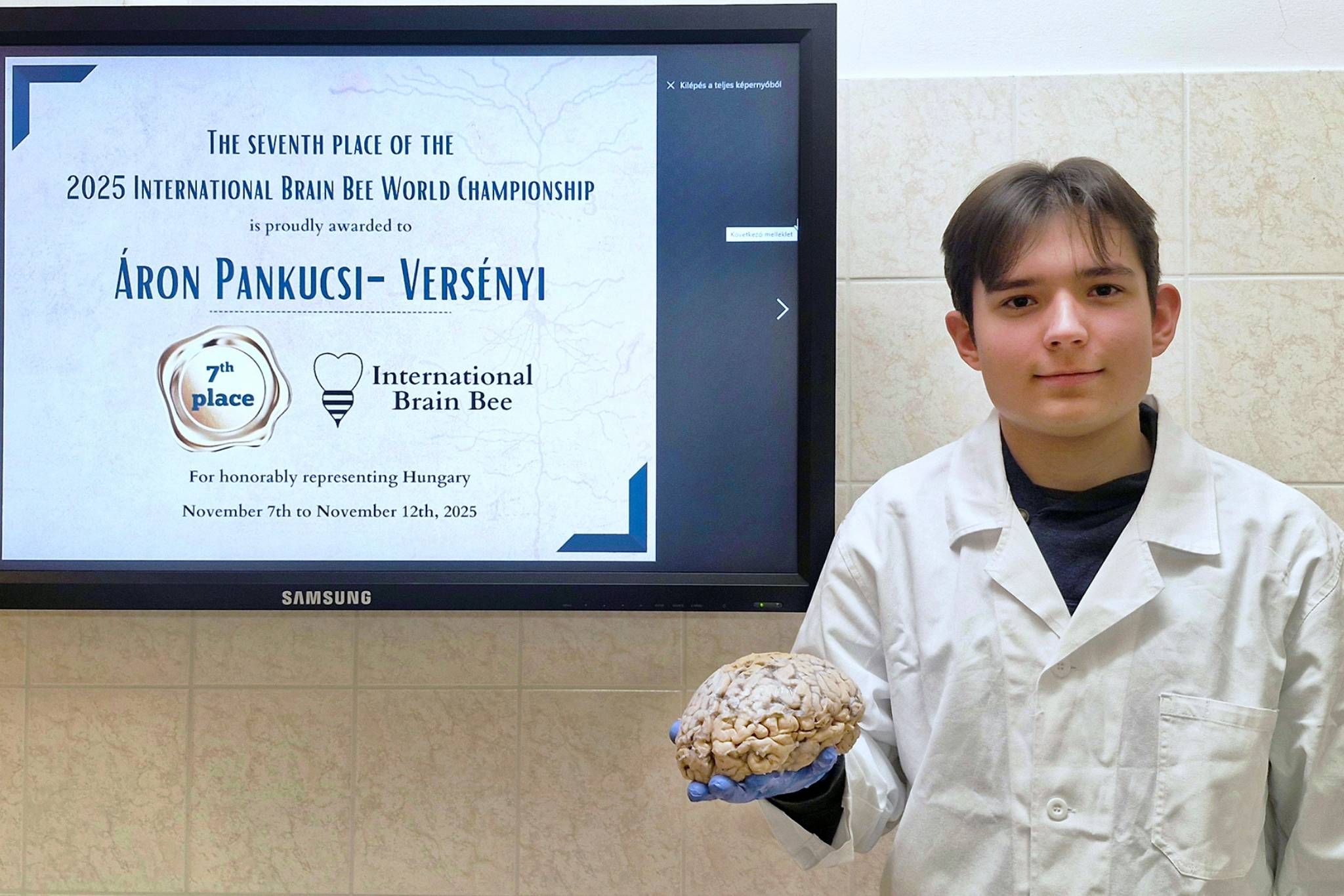 Remekül szerepelt a Debreceni Egyetem Kossuth Lajos Gyakorló Gimnáziuma és Általános Iskolája tanulója a középiskolásoknak rendezett rangos nemzetközi idegtudományi verseny, a Brain Bee döntőjében. Pankucsi-Versényi Áron a 40 fős mezőnyben a 7. helyen végzett.