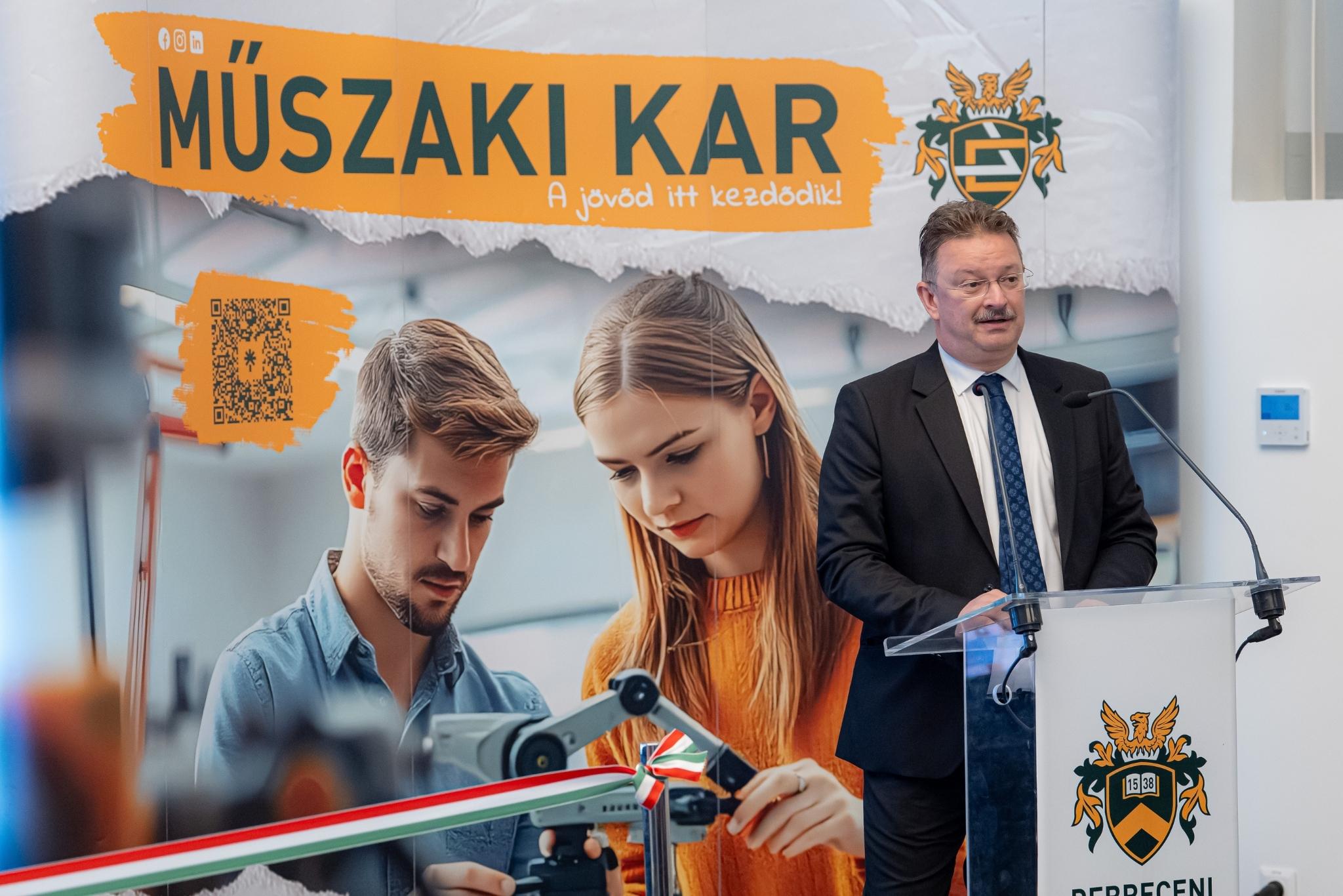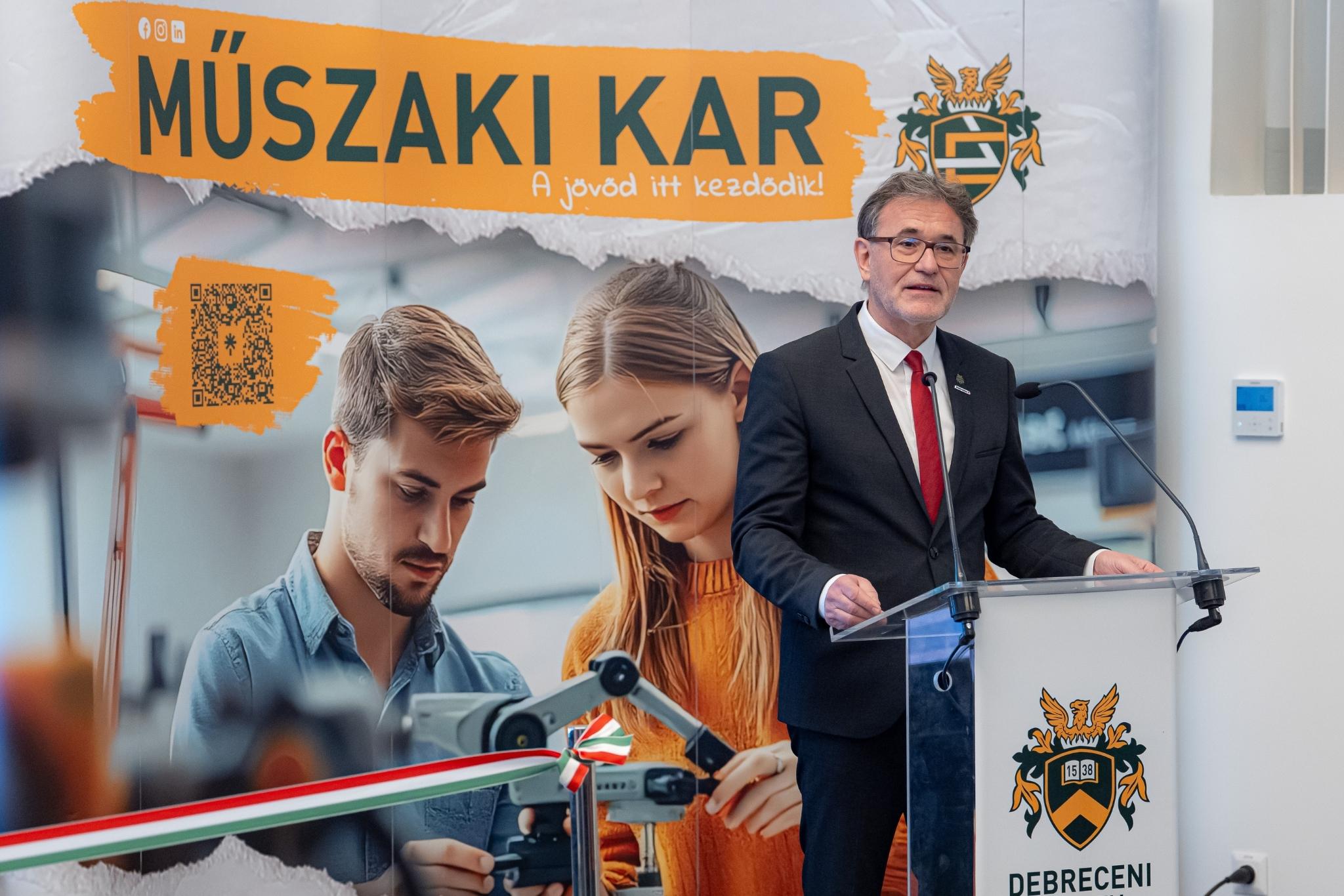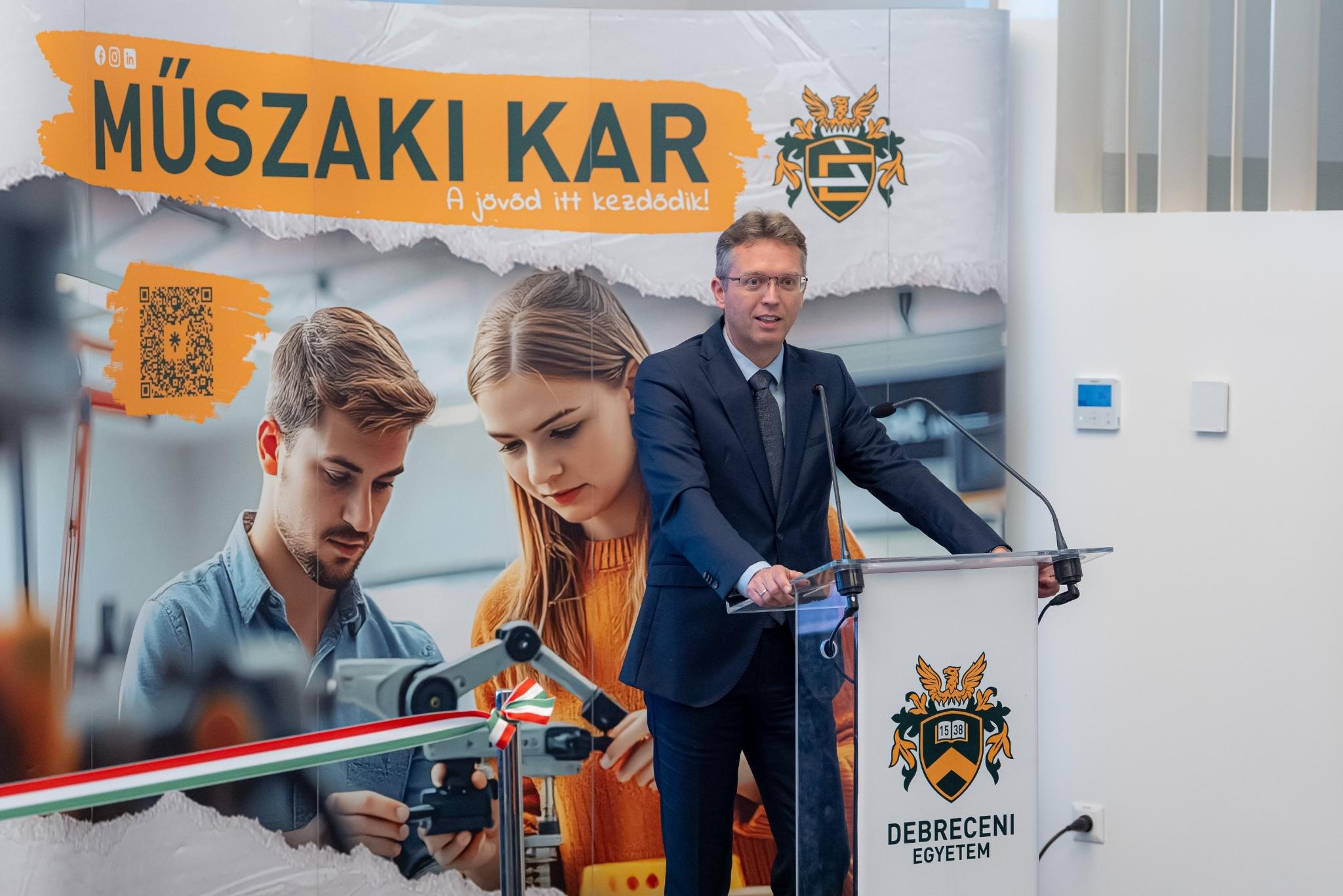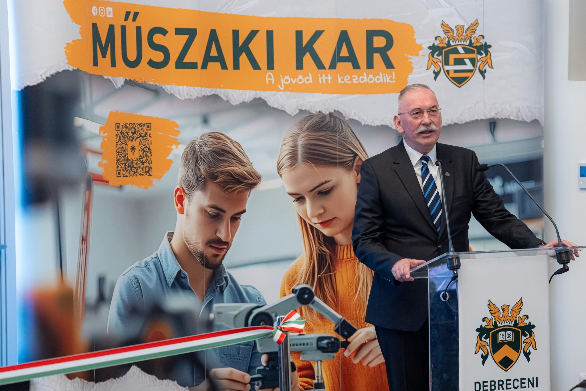 „A világ gyorsan változik, a technológia fejlődése soha nem látott tempót diktál. Ami tegnap még jövő volt, ma már jelen. A mobilitás, az energiafelhasználás, a gyártás mind átalakulóban van. Ebben a világban csak azok tudnak kiemelkedni, akik mernek előre gondolkodni, befektetni a tudásba és építeni azokra az értékekre, amelyek hosszú távon is megtartják és felemelik a közösségeket. Ezért hoztuk létre a Debreceni Egyetem egyedülálló Járműlaboratóriumát, egy olyan kutatási és fejlesztési központot, amely nem csupán követi, hanem formálja is a jövőt. Itt a hallgatók nem csupán tanulni fognak, hanem megérteni, alkotni és hozzátenni a világhoz” – fogalmazott Kossa György.