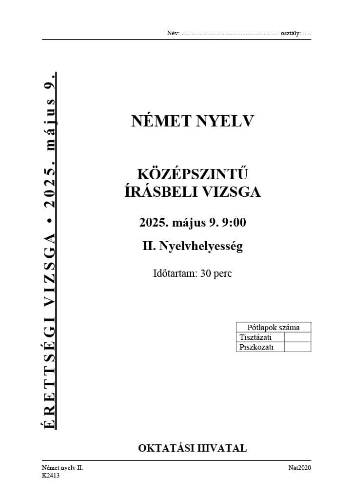 Megjelent a 2025-ös németérettségi feladatsora és a hivatalos megoldókulcs!