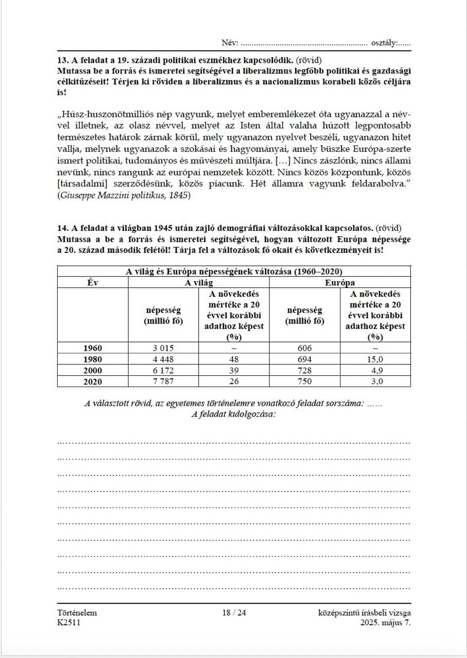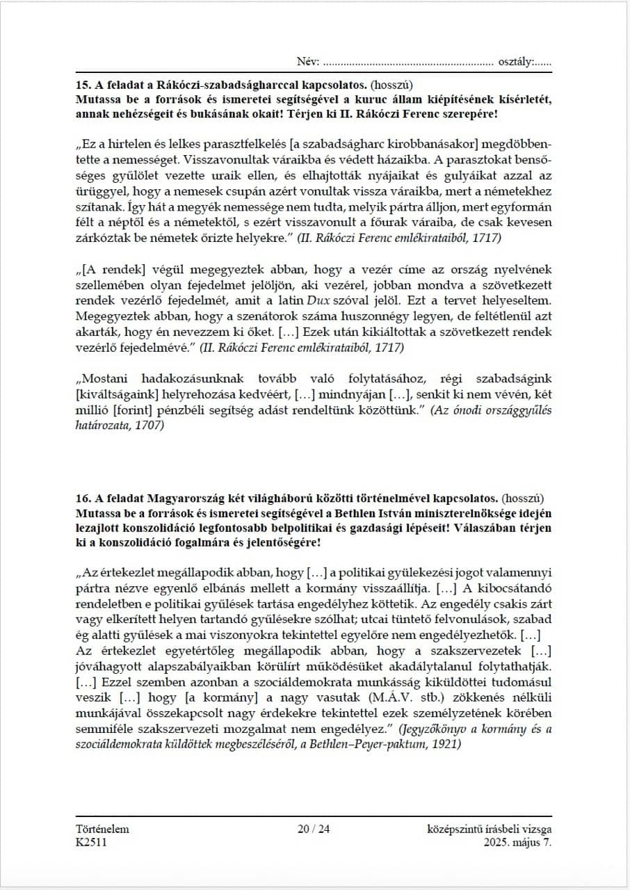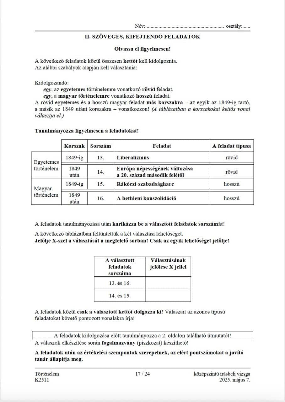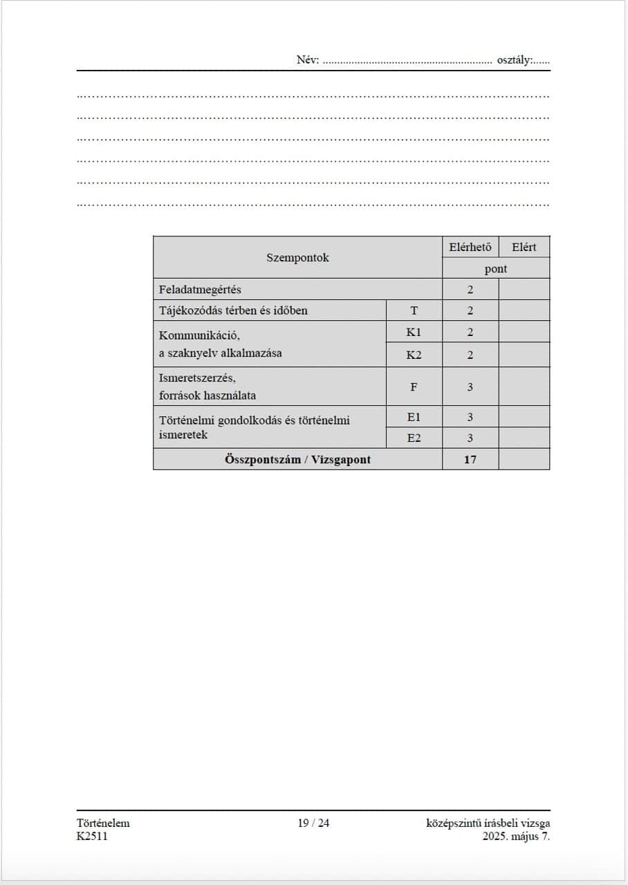 Megjelent a 2025-ös történelemérettségi feladatsora és a hivatalos megoldókulcs!